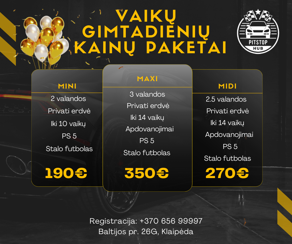 Padovanokite vaikui gimtadienį, kuris išsiskiria iš įprastų švenčių! PITSTOP HUB – tai moderni pramogų erdvė Klaipėdoje, kur vaikai gali patirti lenktynių azartą, žaisti naujausios kartos žaidimus ir švęsti gimtadienį privačioje, tik jų grupei skirtoje aplinkoje.